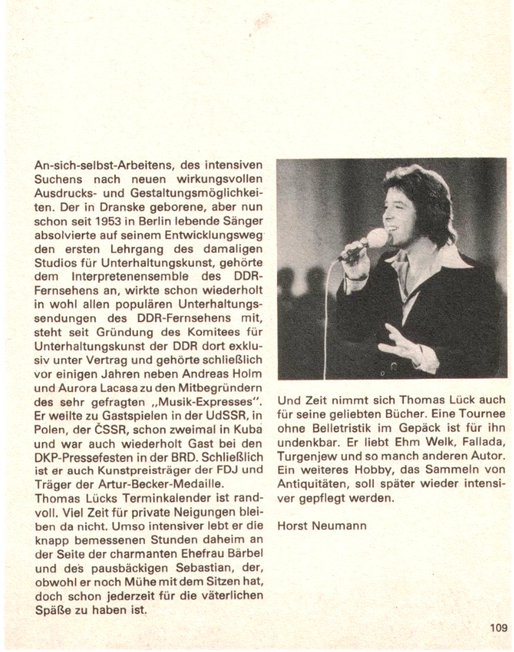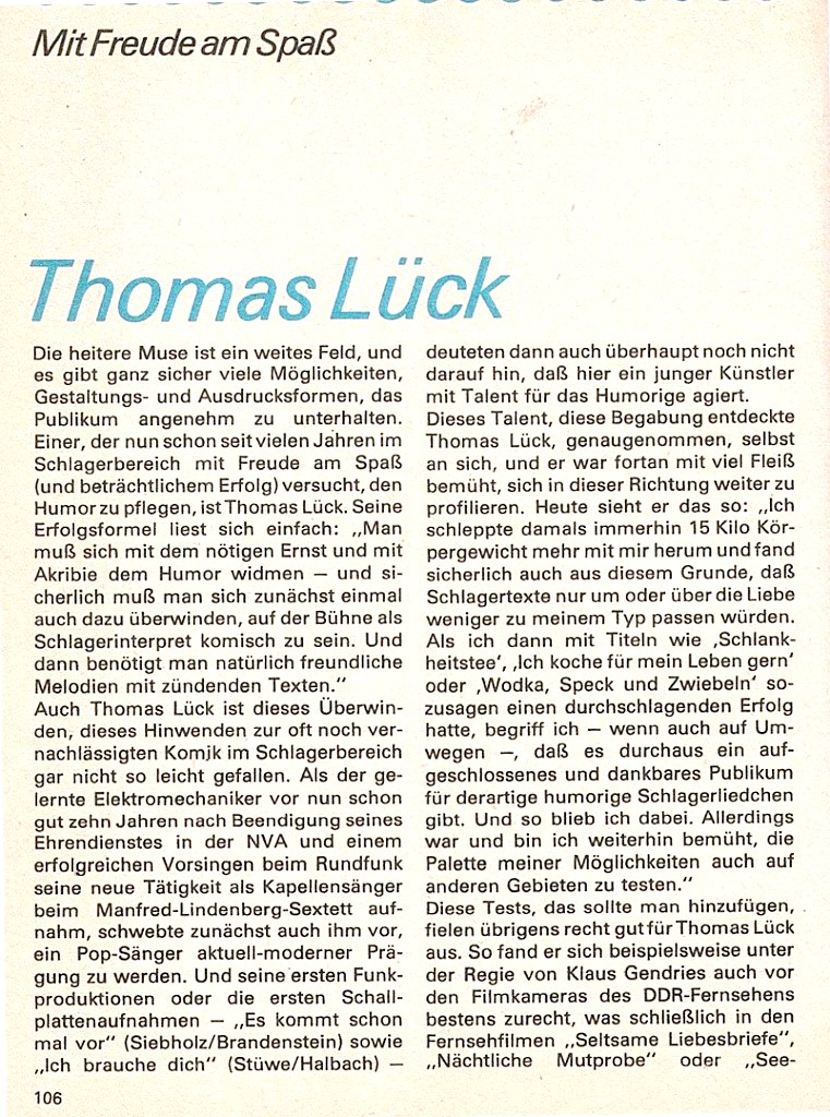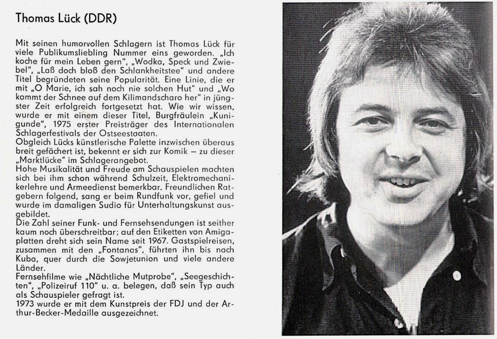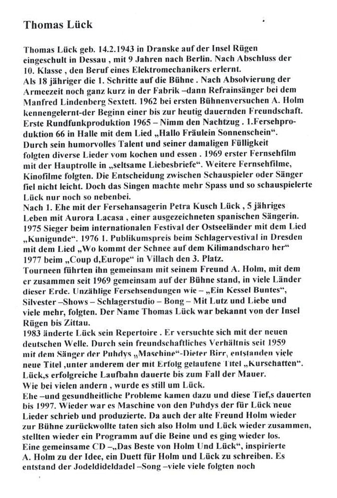[Thomas Lück] [Biografie] [Amiga Singles] [Amiga LPs] [CDs] [Titelinformationen] [Textdokumente] [Verschiedenes] [Holm & Lück] [Impressum]